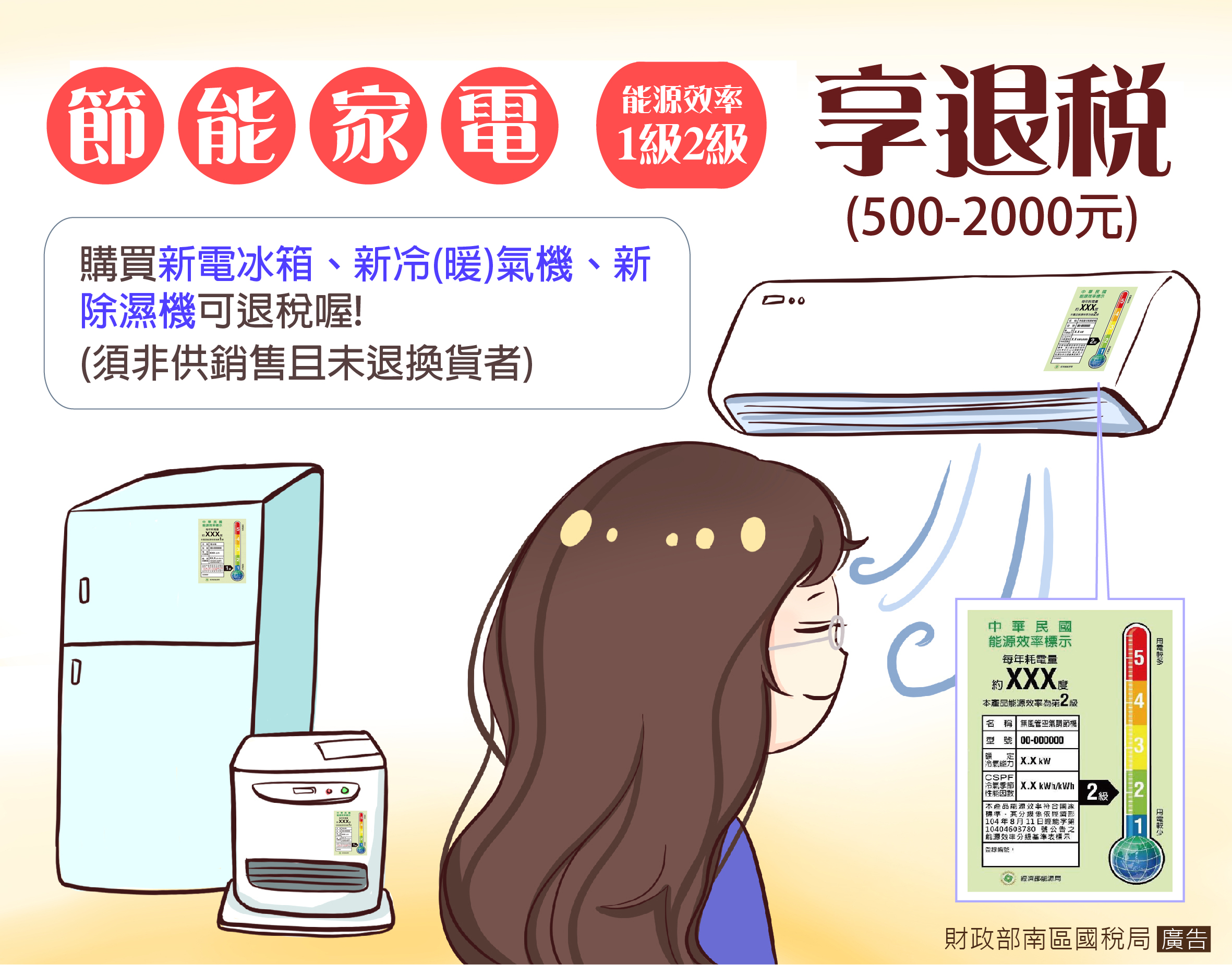 Jun 25, 2021 · 南區國稅局統計,截至5月底,全台已有331.4萬台節能家電享優惠,退稅金額達55.2億元,帶動民眾淘汰家中耗能舊家電,改用.
